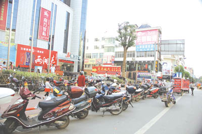 日前,笔者在南大街寿康永乐生活广场门口看见,成排的摩托车停放在路边,由于南大街是条主街道,同时又是交通十字路口,不仅给行人带来了不便,也造成了极大的交通隐患。笔者呼吁市民注意文明停车。