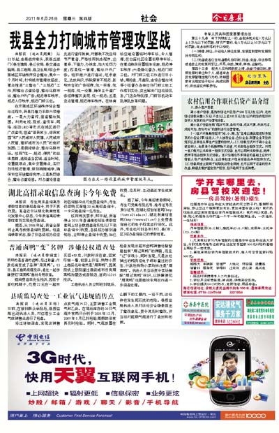 从23日起,由县政府牵头,我县五部门(县住建局、县公安局、县交通运输局、县工商局、县卫生局)联合开展城区环境秩序综合整治,集中一个月时间,打响城市管理攻坚战,重点推进“三整治”、“三规范”工作,即整治占道经营,整治马路市场,整治户外广告;规范停车秩序,规范人行秩序,规范门前三包。