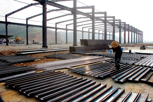 日前,记者在泰山庙工业园区看到,房县农用车整车生产项目标准厂房钢架安装工作正如火如荼地进行,建设者们正为十堰雅德农用机械有限公司的入驻而“筑巢”。据悉,该项目主体厂房将于于6月底前将竣工,8月底前正式投产。 (田兰兰 摄)