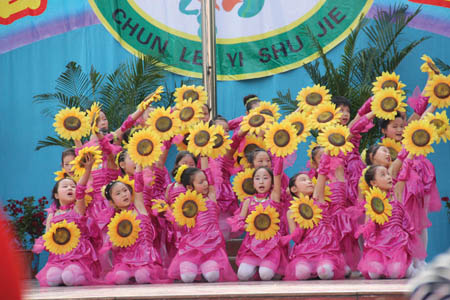 艺术教育课程是学校素质教育的重点,近年来,房县实验小学大力开辟课外艺术教育活动,来提高学生的艺术素质,发展学生特长。学校组建了青年女教师舞蹈队、学生合唱队、教师铜管乐队、学生鼓号队、师生百人器乐队、教师篮球队、儿童舞蹈队、学生武术队等艺术活动团队。利用课余时间,学生在教师的精心指导下技能得到了锻炼,情感得到陶冶,特长得到了发展。学校通过开展“大家唱、大家跳”活动、重大纪念日庆祝活动、春蕾艺术节、“六一”儿童节、元旦联欢活动、冬季运动会、春节文艺大游行、市县级乒乓球赛和湖北省黄鹤美育节等丰富多彩的艺术活动,给学生充分表现的空间,搭建展示艺术特长的平台,从而培养学生健康的审美观念和审美情趣,增强学生热爱学校、热爱生活的美好情感,极大地促进了学生素质的全面发展。多年来,该校学生在艺术领域取得了可喜的成绩:在县宣传部组织的“爱国歌曲大家唱”活动中我校获最佳组织奖;“房陵文化进校园文艺演出”中舞蹈《喜讯》获得一等奖,学校获得最佳组织奖;小品《理解》参加“湖北省第八届黄鹤美育节”获十堰赛区第一名,获“湖北省第八届黄鹤美育节”一等奖;科幻画《抗灾节能方便住所》获省少儿科幻画一等奖;有860余名学生先后在各级“少儿书画大赛”、“作文竞赛”、“才艺表演大赛”等项目中获奖。