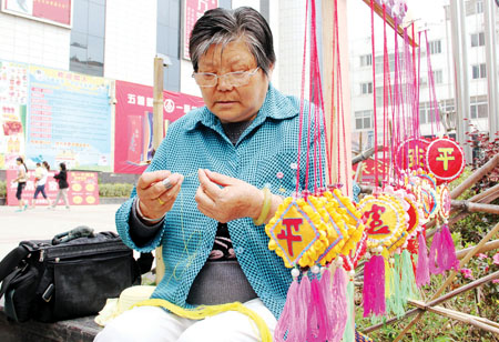 “粽子香,香厨房;艾叶香,香满堂;荷包香,香衣裳……”小小的端午香囊,承载了人们对端午民俗美好的祈望。端午节这几天,66岁的冯贵兰带着自己手工缝制的香囊在街头售卖(如图),颜色鲜艳、样式别致的香囊吸引了大批市民。很多人表示,现在手工缝制的香囊越来越少了,看到这个就能感受到浓浓的端午气氛。冯贵兰老人说:“自己缝制这些香囊,不仅丰富了我的生活,又能把这种房县传统手工艺传承下来,我很开心。” (田兰兰 摄)