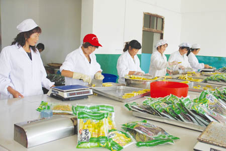 11日,房县天野食品有限公司员工正在为武汉客商生产鲜竹笋。该公司是一家开发、生产、加工和销售天然野生绿色食品的专业厂家,主要经营的“神农峡”牌香菇、黑木耳、竹笋、蕨菜、猕猴桃果脯、香椿、核桃、板栗等系列纯天然绿色山珍已在国内市场俏销。(况建斌 摄)