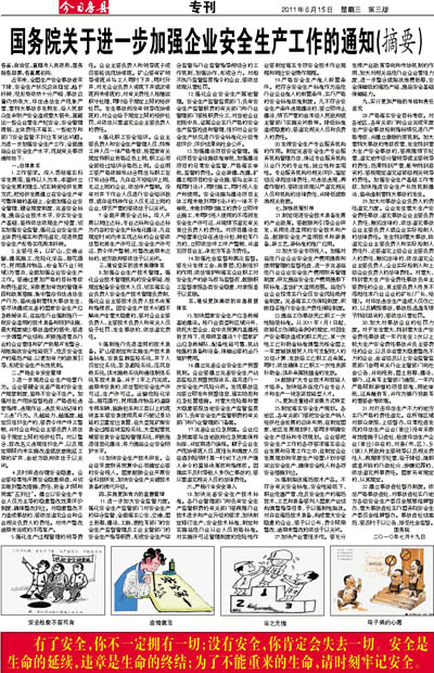 国务院关于进一步加强企业安全生产工作的通知(摘要)