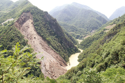 记者15日拍摄的上龛乡二荒村山体自然滑坡现场。