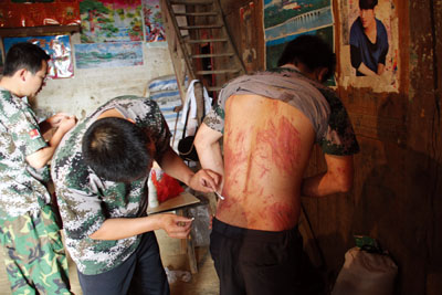医疗人员救助受伤的电站职工。