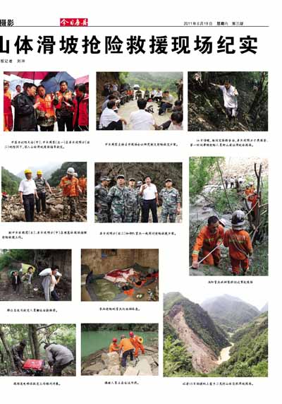 14日傍晚,接到灾情报告后,县长沈明云不畏艰苦、第一时间带领抢险人员爬山前往滑坡体现场。
