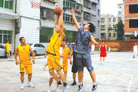 22日,县检察院、县法院联袂举行“庆七一、展风采”为主题的篮球赛。两院主要领导带队参加比赛。在比赛中双方队员发扬友谊第一、比赛第二的高尚风格,充分展示了我县检察官、法官积极向上的精神风貌。图为双方队员在比赛中。(余国金 摄)