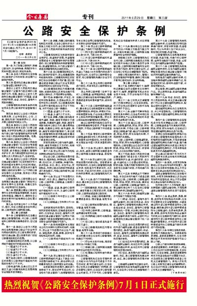 《公路安全保护条例》已经2011年2月16日国务院第144次常务会议通过,现予公布,自2011年7月1日起施行。