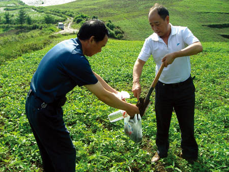 2日,县农业局土肥站和野人谷镇农技中心的技术人员驱车来到海拔1665米的野人谷镇东坪村茅湖堂种植基地,为该区域的土壤进行环境质量检测,重点是检测该区域的土壤中是否含有有毒物质及有毒物质是否超标,并通过GMPV论证,为种植户发放绿色证书,对提升产品的市场价值服好务。(何永鹏 摄)