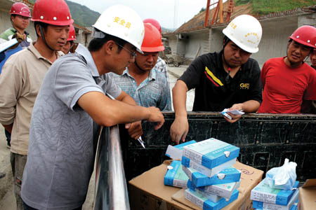 连日来,全县持续高温,给正在谷竹高速房县段13标施工的一线职工带来了严峻的挑战和考验。为有效消除夏季高温天气影响,预防和消减职工及农民工发生过热、中暑等不良影响,谷竹13标项目部积极调整作息时间,将清凉油、藿香正气水等防暑药品送到农民工兄弟手中,让大家在炎炎烈日之中感受到项目部的关怀。 (张燕 摄)