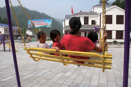 随着竹房城镇带房县片区建设的稳步推进,沿线片区农村生活水平和质量逐渐提高,利用健身器材健身锻炼逐渐被群众所接受。图为19日窑淮乡界山村村民朱秀兰带着一群儿童在界山村村委会广场锻炼身体。(张启龙 段东 摄)