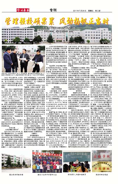 强练内功提素质。校本培训,提升教师的业务能力;评课交流,在思维的碰撞中激发创新的火花;岗位练兵,在激烈的比赛中加快成长步伐;“它山之石”,引进先进经验化为己用……现在,全校80多名任课教师,本科学历占87.5%,学历达标100%;中学高级教师11人,各级骨干教师25人,全国劳模、房县十佳教师各1名;近三年来,有13人次在市、县优质课竞赛中获奖,近百篇论文在市、省、国家级刊物上发表。