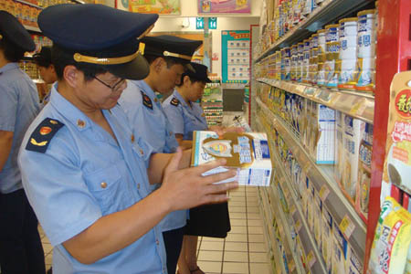 连日来,县工商局陵西路工商所执法人员对辖区内的乳制品经营户进行了专项检查。重点对从事乳制品的经销商、超市、批发和零售经营户等主体资格进行检查,主要看是否于7月底前主动申请变更许可项目和经营范围。同时,严厉查处销售假冒伪劣、过期变质、不合格、无厂名厂址、无生产日期和保质期、未经检验的乳制品等违法行为。(代涛 彭俊杰 摄)