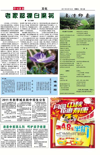 其时正值白果树挂果,青青的白果坠满枝头。一片蝉声里,时有未熟的青果从枝头跌落在身旁的草丛里,捡拾起来,稍稍擦拭,就迫不及待地咬上一口,顿时,丝丝酸甜沁入心脾。白果果实性寒,清湿热解疸毒,味美甘冽,食其美味,便能渐入梦境。
