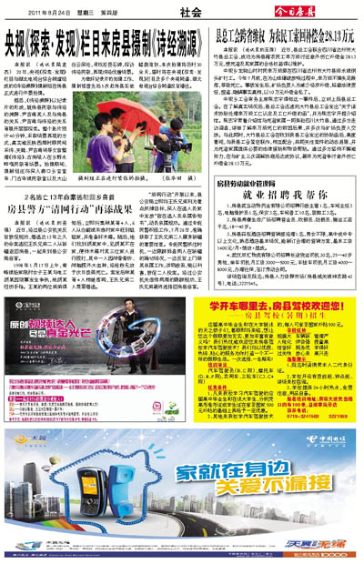 1、房县武当动物药业有限公司招聘行政主管1名,车间主任3名,电脑维护员1名,保安3名,车间普工10名,装卸工3名。