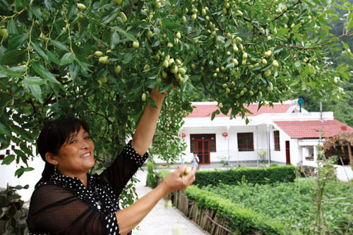 “一天五个枣,永远不会老”。又是枣熟时节,记者走进五台山林场廖家河村看到,鲜甜香脆的小枣挂满枝条,像一颗颗玛瑙珠子,饱满的果实,嘟嘟噜噜的。农家妇女陈大云数也数不过来,整个人都沉浸在欢乐的喜悦中。
