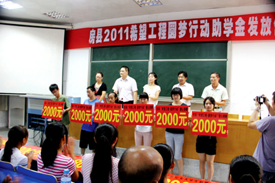 本报讯 (通讯员王瑞) 1日,由团县委主办的“情系助学 爱洒房陵” 2011希望工程圆梦行动助学金发放仪式在县一中举行。本次活动共筹集善款17.1万余元,68名贫困学子得到资助。