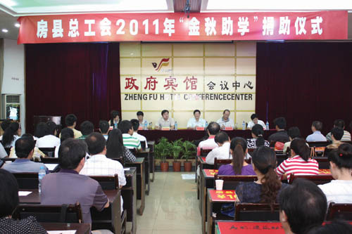 二、资助情况。根据房工发(2011)9号文件“关于开展2011年‘金秋助学’活动的通知”精神,今年主要资助的范围和对象是:家庭特别困难的困难职工(包括下岗职工)、县级以上困难劳模、单亲困难女职工及特困农民工的子女,且被国家教育部门正线录取的一、二本应届毕业生,对于这些无法步入大学的学生将给以力所能及的资助。资助标准是:考入一本院校的将资助1000元,考入二本院校的将资助800元,今年首次对因家庭特别困难的林建同学资助5000元,这是县总工会开展“金秋助学”10年来首次高额资助。对基层工会申报的困难学生,通过县总工会入户调查,对符合条件的80多名困难学生实施资助,资助金额达10万元。县法院副院长李强同志,胸怀善义,积极参与县总工会“金秋助学”活动,今年对居住在偏远山区沙河乡的特困学生柳其志同学进行结对资助;特别是县大禹水电开发有限公司总经理潘万平,2008年参与县总工会“金秋助学”活动,对炳公村农民工的女儿余金艳(考入武汉大学),连续四年以每年8000元的金额结对资助,当听说余金艳的弟弟余金涛今年也考入一类大学,他于8月29日下午赶到余家,把4000元的两个红包分别送到姐弟俩手中,潘万平还承诺对余金艳考研进行资助。在今后的“金秋助学”活动中,希望有更多的仁爱之士加入到捐资助学行列,为国家、为社会培养更多的人才。