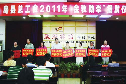资助一名学生,温暖一个家庭,播种一个希望,情感几代人。希望社会各界朋友能够一如既往,情系职工,心系学子,在以后的日子里继续关心和支持县总工会“金秋助学”活动,为构建和谐房县作出更大的贡献!
