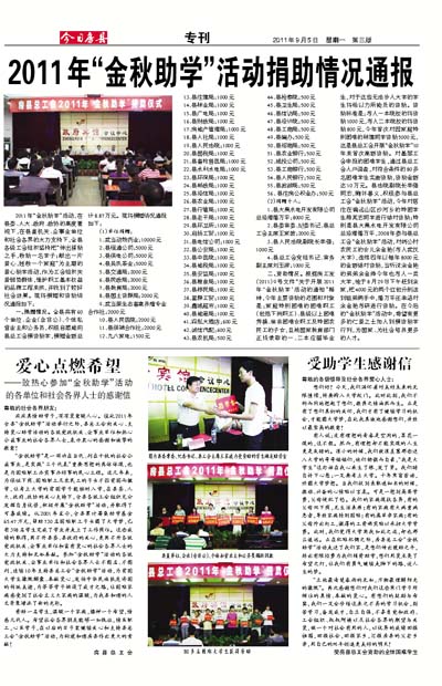 2011年“金秋助学”活动捐助情况通报