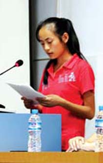我是2011年房县一中的毕业生任芳,今年18岁,以545分的高考成绩被长江大学录取。很荣幸能在这里发言。家中父母都是农民,姐姐因为智力残疾也没有劳动能力,在这样的条件下入学经费及以后的生活费用成了父母的一块心病。作为他们的子女,有心想为他们分担一些却又无能为力。