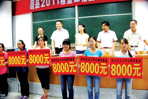 暑假期间向团县委递交了申请并参加了座谈会,现在我有幸获得了由“新世纪女大学生教育基金”提供的专门用于帮助贫困地区女大学生的8000元公益基金。在这里,我代表获得这项资助的同学们感谢263网络集团李小龙先生对我们求学之路的支持,感谢团县委的工作人员为我们奔波忙碌,在感谢曾经精心培育我们的老师们。
