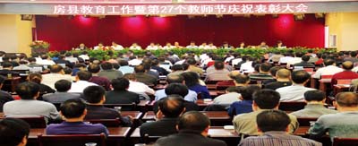 会上,县委常委、常务副县长曹明权宣读《中共房县县委、房县人民政府关于命名表彰房县首届“十大名师”的决定》和《中共房县县委、房县人民政府关于表彰2010年度全县教育工作先进单位和先进个人的通报》,县委常委、宣传部长徐锦凤宣读《十堰市人社局、十堰市教育局关于表彰优秀教师、优秀教育工作者的决定》和《房县人社局、房县教育局关于表彰优秀教师、优秀教育工作者的决定》,副县长周登峰代表县政府与乡镇签订2011年度基础教育工作目标责任书,县教育局局长文海传达了全省教育工作会议精神。