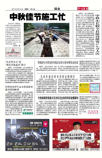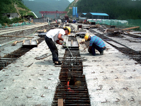 在中秋节小长假期间,十堰市双环公路建设有限公司的建设者们放弃节日与家人团聚的时间,加班加点奋战在十房高速公路13合同段建设工地,确保一期土建工程实现年底基本贯通的目标。十房高速公路13合同段位于房县红塔、城关两乡镇,路线全长8.19公里,总投资2.17亿元元。图为繁忙的施工现场。 (金伟忠 摄)