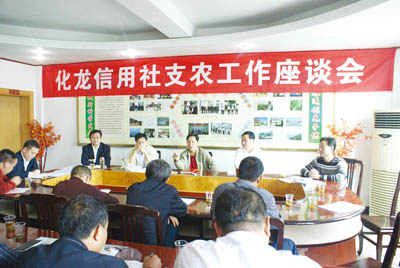 14日上午,县信用联社在化龙镇召开支农工作座谈会。会上,县联社理事长彭刚介绍了信用社业务发展情况,就强化社农关系,促进社农共赢提出了具体的工作措施。化龙镇党委书记谢登文要求该镇、村两级干部要积极支持配合信用社工作,加大宣传力度,充分发挥“信息员、宣传员、联络员”的作用,为帮助农民增收,推动信用社发展,促进全镇经济发展做出应有的贡献。(戢浩 摄)