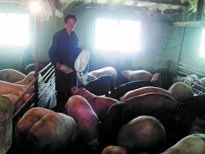 金秋十月,笔者在中坝乡龙滩村农民刘成清的猪栏看到,满圈肥猪,个个体大肉满。今年开春,他在信用社借了5万块钱,加上自己打工积攒的钱,建了猪栏,买了猪苗,办了个“150型”家庭猪场。现已出栏两茬,收入25万多元,眼下又要卖第三茬,全年至少要收入40万元。他喜悦地告诉笔者:“猪价高,销路好,又有信用社的支持,今年我算‘搞住经’了”。 (刘学钦 邹启林 摄)