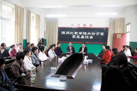 自“课内比教学、课外访万家”活动开展以来,县职业技术学校把该活动作为本学期教育教学工作的一条主线 ,结合职业技术学校特点学校制定了周密的活动实施方案。图为12日该校将部分学生家长请进学校与学校领导和科任教师进行面对面的座谈,让学校和家庭之间的距离拉得更近。 (吴宏强 杨娥 摄)