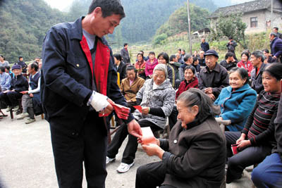 自换届选举工作开展以来,五台山林场利用多种形式向广大村民广泛宣传换届选举工作的重要意义、法律法规、政策规定、方法步骤等,目前,全场村级组织换届选举工作呈现出思想上高度重视、行动上自觉坚定、组织上保障有力的良好态势。截至目前,该场各村党支部委员和村委会委员经过推选已正式产生,人大代表选取划分已完成,场党代会召开日期已确定。图为红场村村党支部委员候选人推选现场,工作人员正在发放推选票。 (田兰兰 况建强 摄)