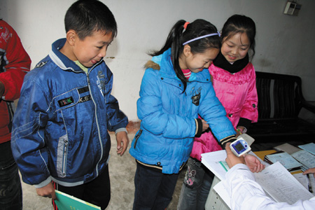 2日,榔口乡卫生院医务人员来到榔口中学,给该校学生进行免费健康体检,同时为每个学生建立个人健康档案。截止目前,该乡600多名中小学生已全部建立个人健康档案。 (王俊 何丽 摄)