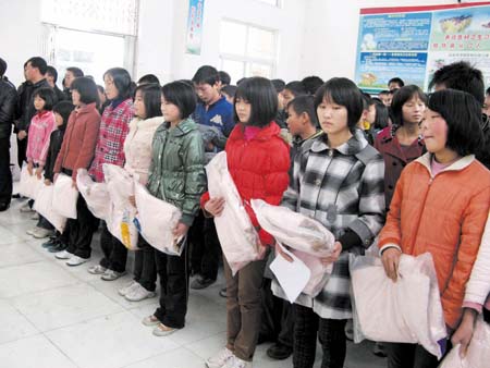 17日,天海石油公司向姚坪中学捐赠高档电脑4台、精装图书3000册,向姚坪中学家境贫寒学生和品学兼优学生捐赠了优质羽绒服30套,向姚坪小学贫困学生捐赠羽绒服10套。这是该公司继今年7月在黄玉口小学举行捐赠活动后,又一次在姚坪乡举行的大型捐赠活动。 (陈贵金 摄)