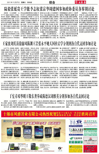 委员们在讨论中一致认为,朱光洪同志所作的《政府工作报告》客观总结了“十一五”时期特别是即将过去的2011年房县经济社会发展取得的巨大成就,科学分析了当前房县发展面临的形势和机遇,对房县“十二五”发展蓝图的描绘,特别是打造“实力房县、生态房县、和谐房县、幸福房县”,立意高远,鼓舞人心,催人奋进。对今年工作的安排,目标清晰,重点突出,措施有力。委员们纷纷表示,有县委、县政府的坚强领导,有全县上下的团结奋进,建设“实力房县、生态房县、和谐房县、幸福房县”的奋斗目标一定会变为现实。