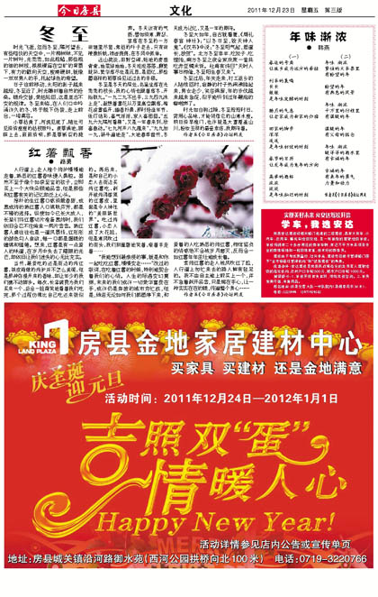 当然,最爱吃的还是街边的烤红薯,铁皮箱做的烤炉并不怎么美观,但是那种弥漫开来的香味,却让年少的我们挪不动脚步。每次,长辈破费为我们买来一个,总会一脸微笑地看着我们吃完,那个过程仿佛比自己吃还来劲似的。再后来,是和自己的小恋人去街边买烤红薯吃,剥开被烤得漆黑的红薯皮,里面是令人神往的“美丽新世界”。吃过烤红薯,小恋人成了大花脸,但是寒风吹过的街头,我们却温馨地笑着,牵着手走着……