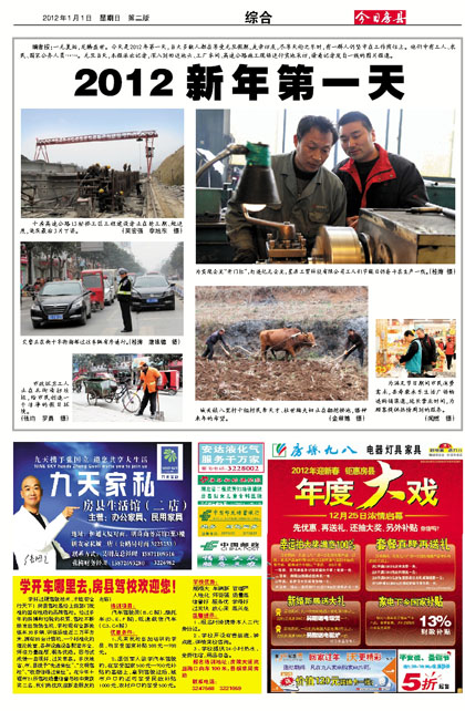 编者按:一元复始,龙腾盛世。今天是2012年第一天,当大多数人都在享受元旦假期,走亲访友,尽享天伦之乐时,有一群人仍坚守在工作岗位上。他们中有工人、农民、国家公务人员……。元旦当天,本报派出记者,深入到田边地头、工厂车间、高速公路施工现场进行实地采访,请看记者发自一线的图片报道。