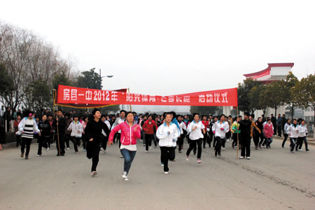 上月31日,县一中举行了隆重的“2012阳光体育·冬季长跑”启动仪式。仪式结束后,全体学师生参加了“迎新年越野长跑”比赛活动。 (高英 摄)