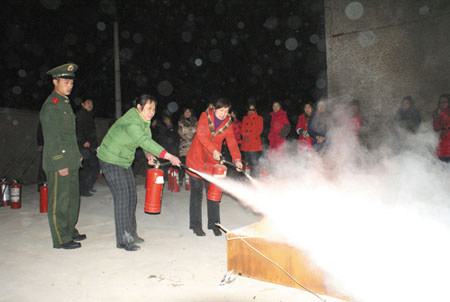 为加强春节期间安全工作,让全体员工掌握突发性灾害发生时有关防火逃生知识和消防技能,日前,县信用联社在县消防大队教官的指导下,组织进行了一次安全消防演练活动。通过此次演练,为员工上了一堂生动的消防安全课,进一步增强员工的消防安全意识。图为演练现场。 (戢浩 摄)