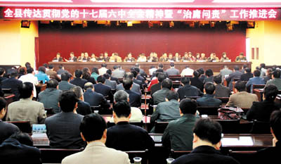 2011年10月26日,县委召开专题会议,传达党的十七届六中全会精神,推进“治庸问责”工作。我县将全面推进文化体制改革,提升文化服务功能,打响诗经文化品牌,深度挖掘房陵文化,规划建设文化产业园,不断加强文化人才队伍建设,努力把房县打造成文化大县、文化强县。在“治庸问责”上将曝光一批反面典型,通报一批违规现象,整改一批突出问题,问责一批违规人员。