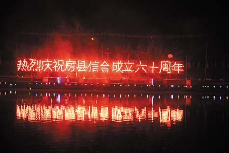 10日晚,西河广场热闹非凡。为庆祝湖北房县农村商业银行股份有限公司正式揭牌,该行在西河广场举行了盛大的烟花爆竹燃放仪式。“满天星”、“天女散花”等各式各样烟花爆竹的燃放吸引了千余名群众驻足观看。 (赵爱平 戢浩 摄)