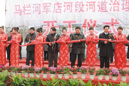 上午10时18分,县委书记沈明云宣布马栏河军店河段河道整治工程正式开工。