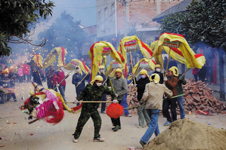 舞火龙是最具房县地方特色的元宵节民俗活动。相传始于唐代,盛于明清,流传至今,经久不衰。今年的元宵节,全县各地均组织了以“龙凤呈祥 风调雨顺”为主题的舞火龙活动。