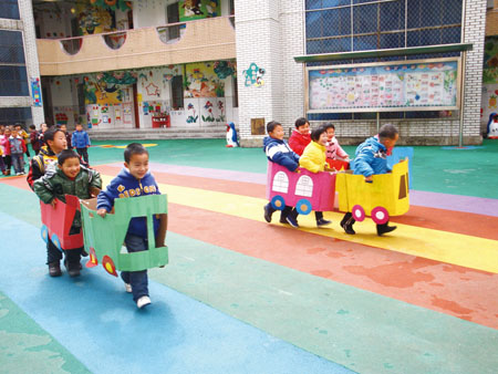 面对愈演愈烈的学前教育“小学化”,县幼儿园尊重幼儿身心发展规律,规范办园,科学保教,以丰富游戏活动为载体激发孩子的求知欲望、为孩子传授知识,用先进的理念去指导办园和教学实践,使儿童能够接受到科学的学前教育。图为县幼儿园小朋友正在做“快乐小司机”游戏。