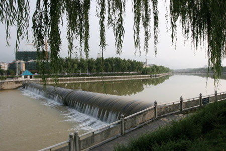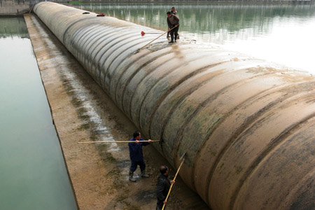 19日,县水务局工作人员为沿河公园人工湖橡胶坝进行了全面检查,并清除了上面的淤泥,以此增强对水质和环境的保护力度。近年来,县委、县政府坚持“人水和谐”的理念,投资1.67亿元安装了橡胶坝,建成人工湖7座,这不仅有效地提高了我县城区防汛调控能力,同时也营造了优美的人居环境。上图为西河人工湖一景;右图为县水务局工作人员正在为城区橡胶坝“体检美容”。 (张启龙 摄)
