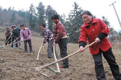 近日,五台山林业总场红场村的村民们正在药材示范基地对桔梗进行田间管理。2011年,该场中药材种植总面积达6000亩,村级高标准示范园8个,药材产量285吨,实现产值172万元,促进了药农增收致富。 (田兰兰 田席堂 摄)