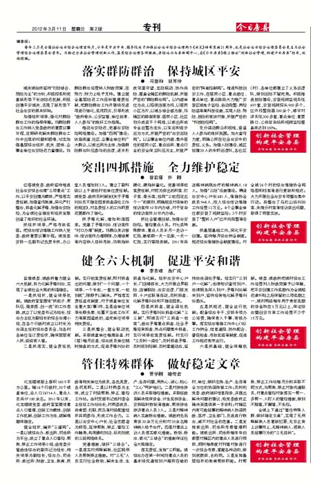 窑淮镇委、镇政府着力健全六大机制,努力化解矛盾纠纷,实现了全镇社会大局的和谐稳定。