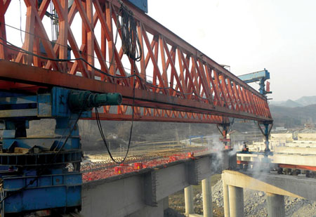 10日下午,十房高速11标葛坪河1号大桥首片30m预应力混凝土T梁稳稳的落在桥盖梁上,这标志着十房高速11标2012年第一片T梁成功架设。葛坪河1号大桥紧邻十房高速公路通省隧道出口,全长187m,共1联6孔,左右幅呈错台布置,共有30m预应力混凝土T梁60片。该桥是十房高速11标主线最后一座桥梁,首片T梁成功架设,为顺利完成十房高速建设指挥部下达 “6月份桥梁半幅贯通,7月份桥梁全幅贯通”的生产目标起到了极大的推动作用。 (罗慧 摄)
