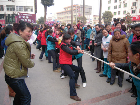为引导广大员工投身于体育锻炼,14日,寿康永乐房县区域全体职工在生活广场门口举行趣味运动会,300多名员工参加。
