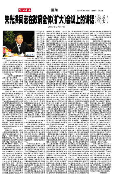 ㈡加快发展,提升实力。科学发展观把发展作为第一要义。要为十堰市区域性中心城市建设作贡献,应该从四个方面着手。一是要增强发展意识,营造发展氛围。全县上下必须拧成一股绳,大力营造思发展、谋发展、比发展的浓厚氛围,争做先发展的强手、快发展的能手、会发展的高手。凡是对发展有利的项目,我们都要不遗余力地去争取实施,在领导、资金、精力上重点倾斜;凡是对发展有利的政策,我们都要绞尽脑汁地去用足用活,不让大好机遇失之交臂;凡是对发展有利的人才,我们都要重视重用,最大限度地盘活人力资源。二是要调整发展规划,加快发展步伐。 按照“立足实际,适当超前”的原则,在深入比较省、市指标的基础上,制定出既高于省、市平均水平,又符合我县长远发展的目标体系。做到既促进经济社会可持续发展,又符合我县实际。会后,各相关部门要按照这两个原则,对我县各项目标进行重新论证、调整,尽快形成一套相互衔接、有机统一的规划体系。三是要强化发展举措,提高发展实效。要注重措施的针对性和侧重点,促使发展效益最大化。抓工业,重点在于壮大企业主体;抓城镇化建设,重点在于搞好南部新城建设和城市管理;抓农业,重点在于发挥龙头企业、农民专业合作社的作用,扩张特色产业规模,发挥竹房城镇带的示范引领效应。抓旅游,重点在于加强生态环境保护,培植旅游精品,提升服务能力;抓扶贫,重点在于与国家新一轮扶贫开发政策、秦巴山片区扶贫发展规划的无缝对接。四是破解发展难题,增强发展后劲。我们目前的主要问题集中表现在项目、资金、土地、人才等四个方面,破解项目难题,要着重在项目前期、申报争取和项目落地上下功夫;破解资金难题,要发挥城投公司、担保中心的作用,充分运用市场的手段多元化融资;破解用地难题,要在土地整治、土地收储上做足文章,把土地向工业园区倾斜,向符合国家产业政策、重点招商引资、城市基础设施项目倾斜;破解人才难题,要在引进和培养上做文章,不断完善机制,激发活力,确保人尽其才。